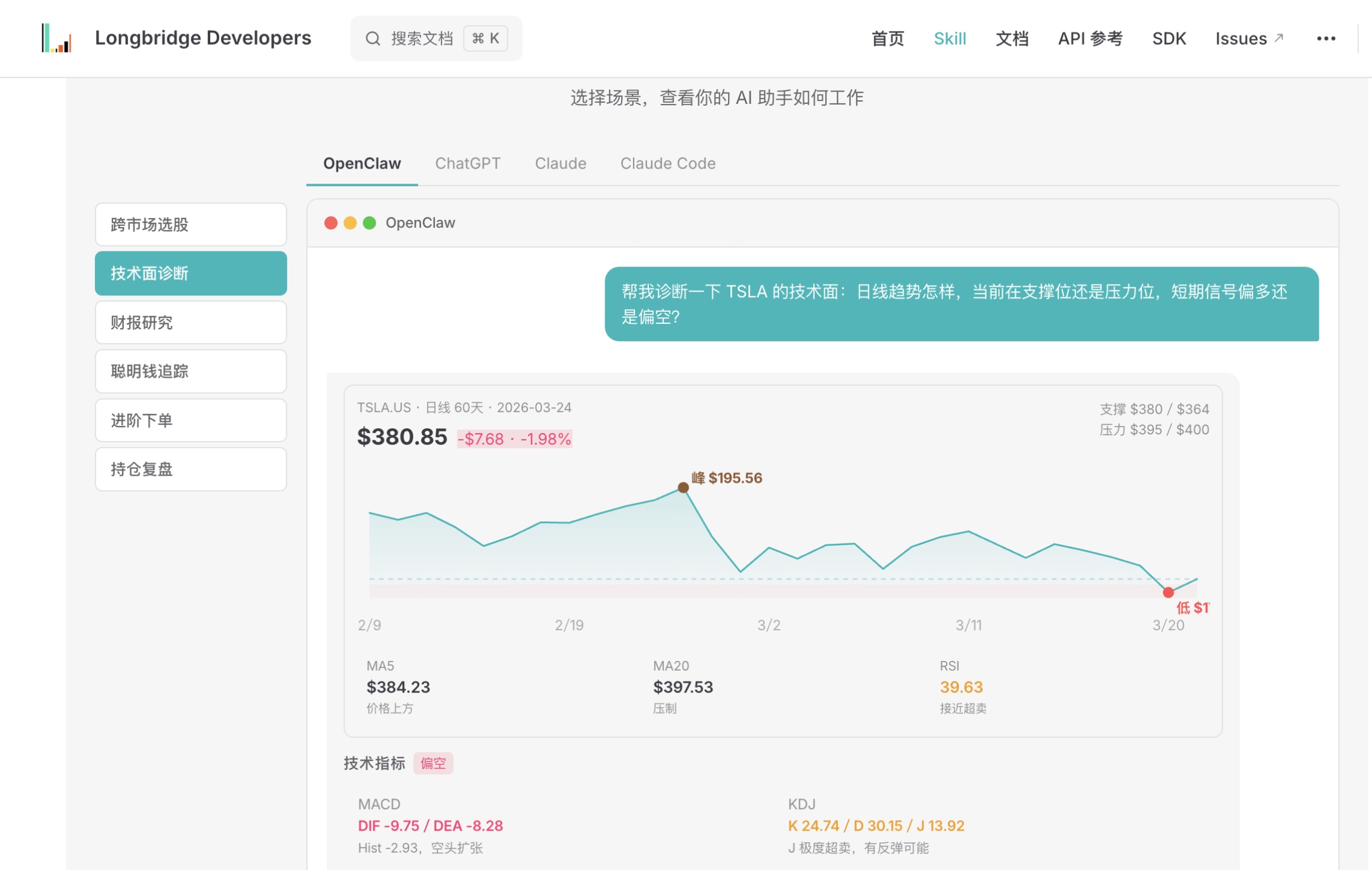 這場變革中,長橋和富途都推出了自己的 Skills 方案。但兩者的架構哲學,從第一行代碼就分道揚鑣了。